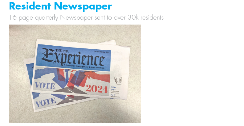 I also serve as the house photographer for public events, documenting PHA residents, as well as dignitaries such as Senator Bob Casey, Congressman Dwight Evans, Governor Josh Shapiro and Mayor Cherelle Parker.